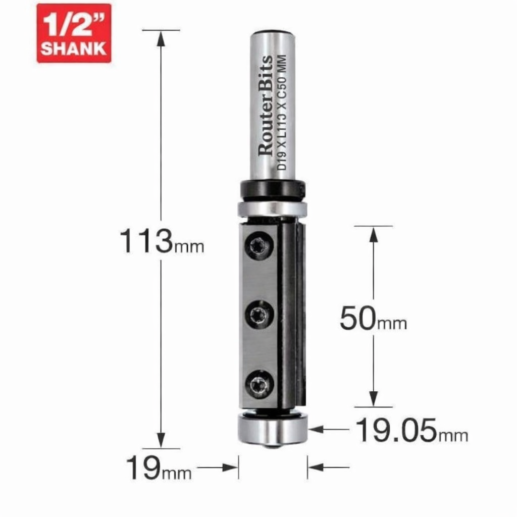 This flush-trim tool is in-house designed for durability and precision, this Router Bit features a solid steel body and replaceable tungsten carbide blades for long-lasting, stable performance. Suitable for all wood types, including softwood, hardwood, MDF, and plywood, it delivers clean, accurate flush trimming when used with a hand router or router table.